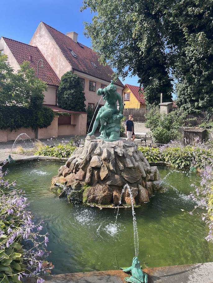 Som dere allerede vet er kirkebesøk et must når jeg er på tur. Det gir meg en helt spesiell følelse av beundring og ærefrykt når jeg går inne i disse ofte gamle og mektige byggene. Rundt på øya finner man flere gamle kirker, mange fra middelalderen. De er en viktig del av Gotlands identitet – både som historiske monumenter og som levende møteplasser. Vi besøkte Visby domkirke, Sankta Maria, som var utrolig vakker i sin rustikke steinarkitektur. De hvite veggene, de håndmalte utsmykningene og stillheten skapte en stemning som var både høytidelig og varm.