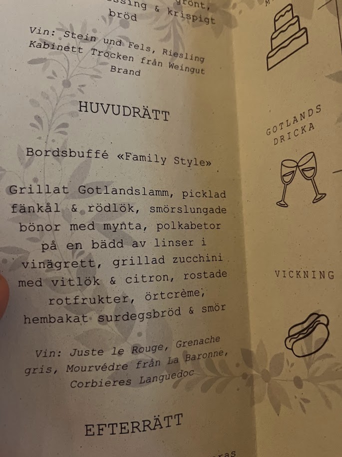 Som sagt var grunnen til at vi besøkte Gotland et bryllup – og for et sted å feire kjærligheten! Stelor Gård, som ligger omtrent 25 minutter sør for Visby, viste seg å være den perfekte rammen for dagen. Her finnes ingen strand i nærheten, men landskapet er likevel ubeskrivelig vakkert – med åkre som bølger i vinden, gamle steinmurer og trær som omfavner gården. Selve stedet er en gårdsrestaurant med overnatting, kjent for sin lokale mat, varme atmosfære og ekte gotlandske sjel. Bryllupet ble en uforglemmelig opplevelse som minnet oss på hva som virkelig betyr noe.