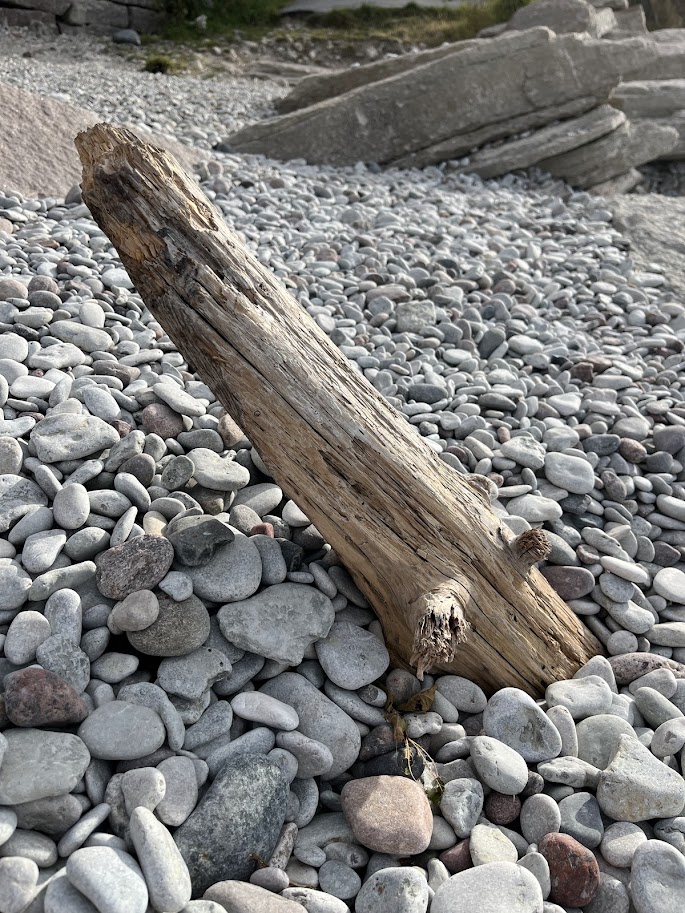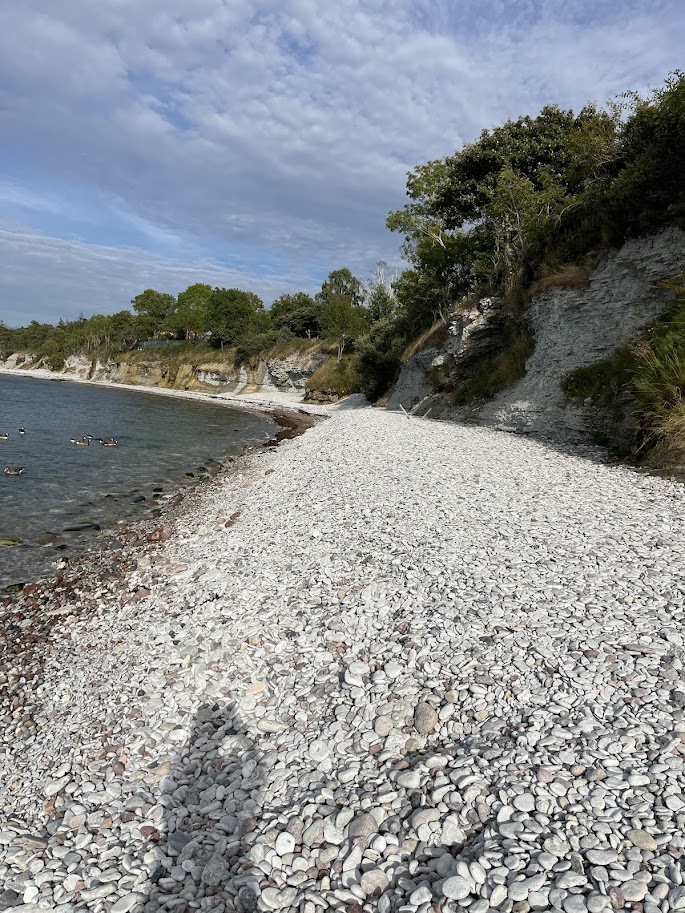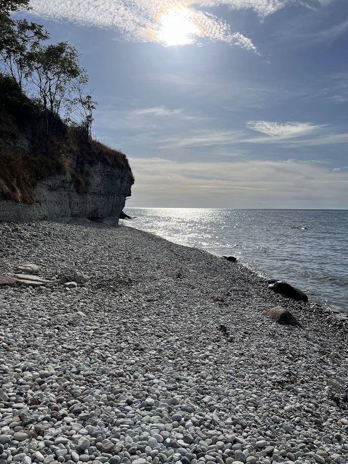 Å gå langs stranden føltes som å vandre i en evig horisont. Havet strakk seg uendelig langt, og bølgene skyller rytmisk inn mot land med en lyd som både beroliget og fylte meg med ærefrykt. De hvite rullesteinene glinser i solen, og hver bevegelse fra havet skapte en ny melodi idet vannet trakk seg tilbake. Stillheten var påtagelig – bare avbrutt av ropene fra en og annen måke som svevde over deg, som om den vokter dette tidløse landskapet mellom himmel og hav.